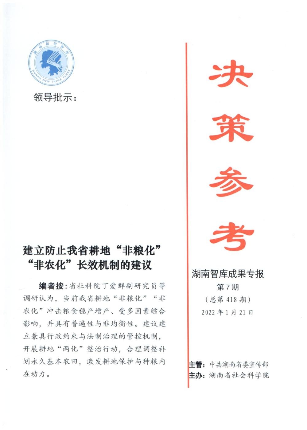 《决策参考·湖南智库成果专报》