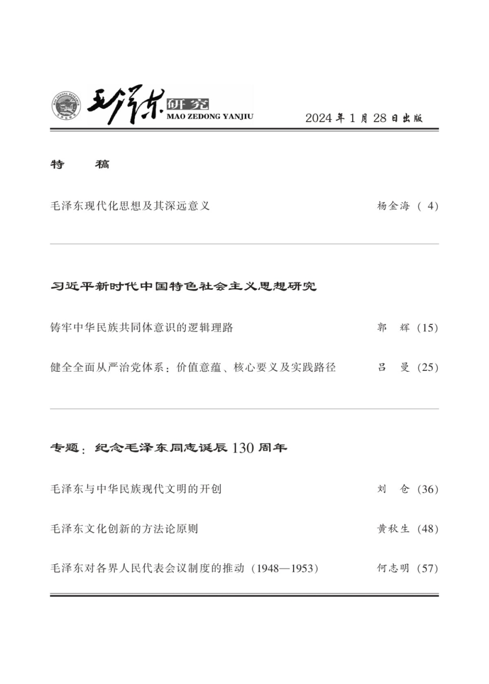 《毛泽东研究》2024年第1期