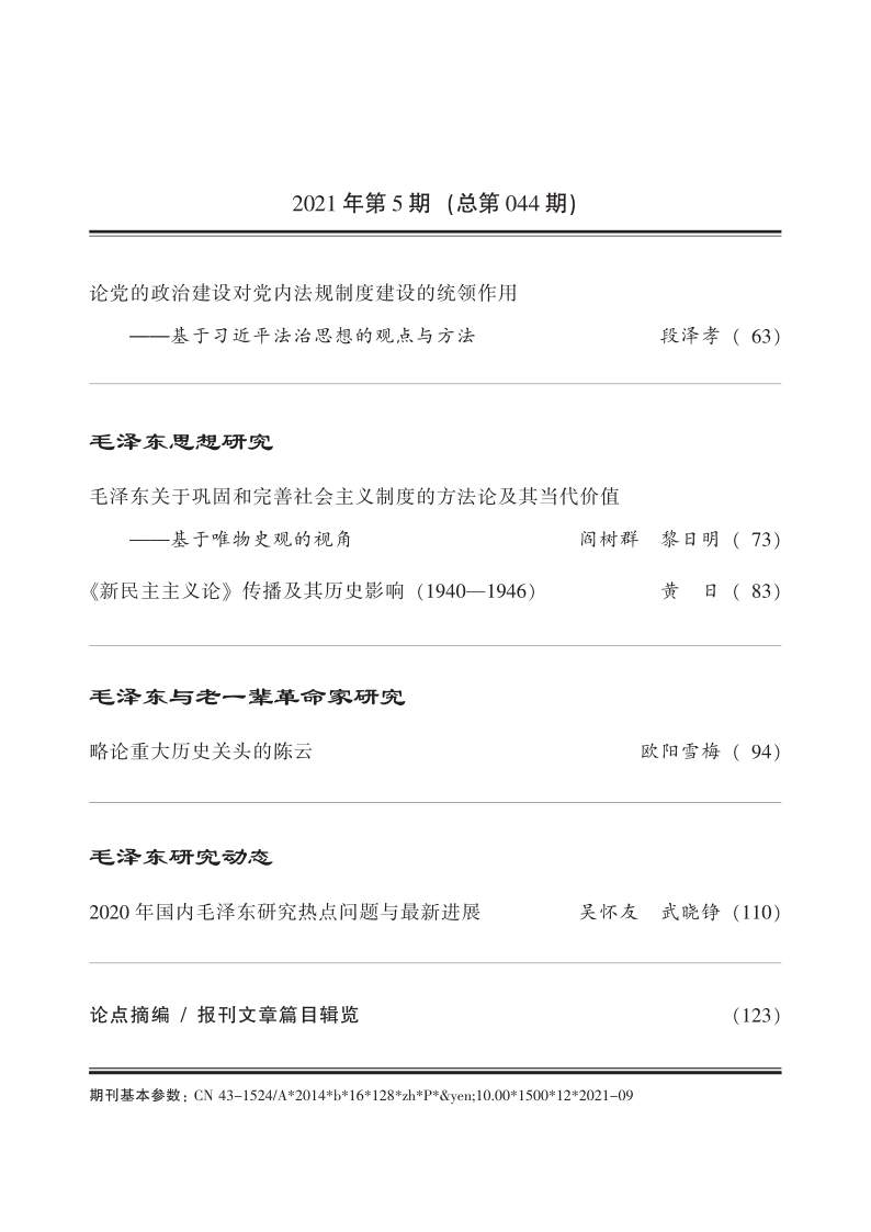 《毛泽东研究》2021年第5期
