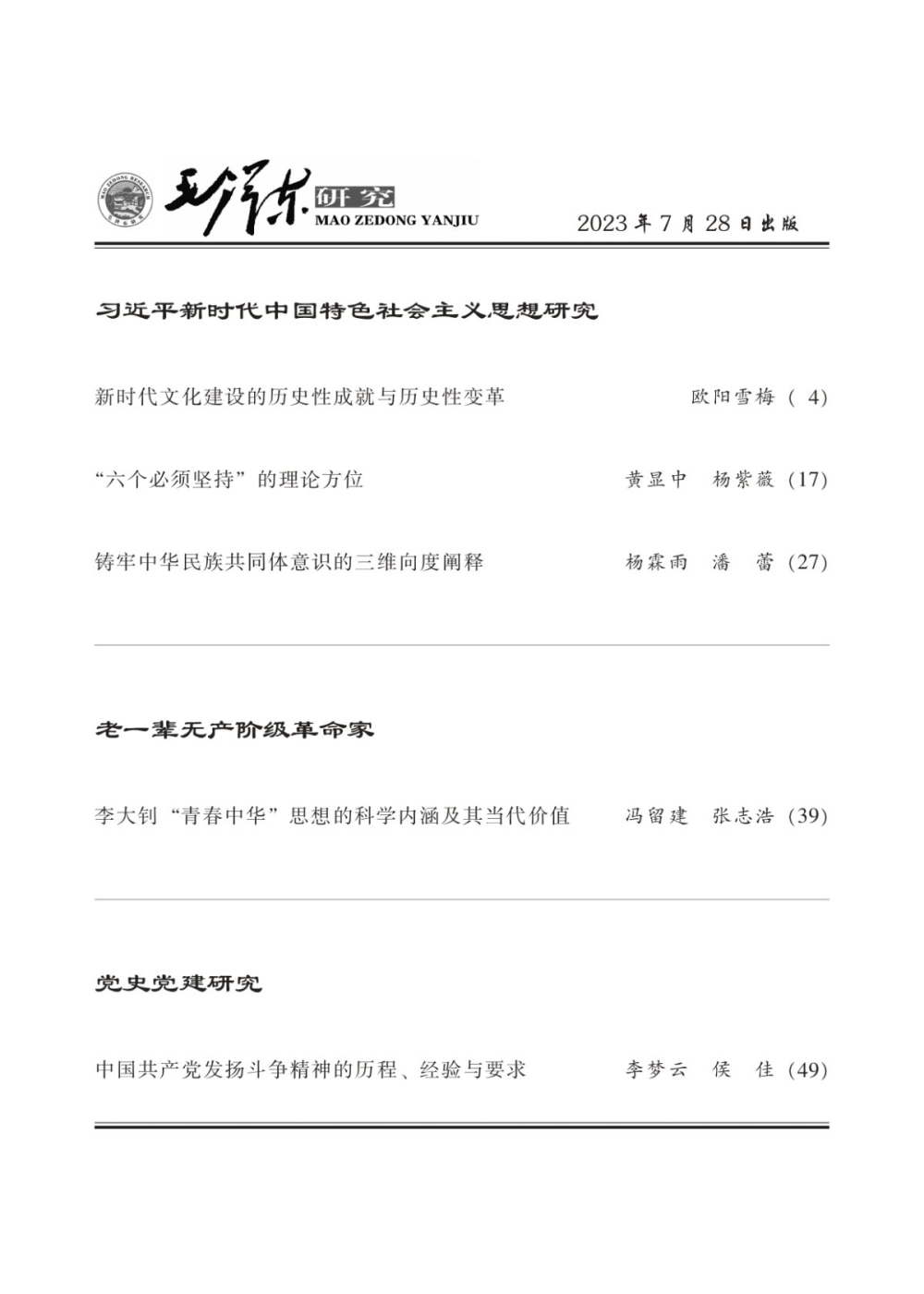 《毛泽东研究》2023年第4期