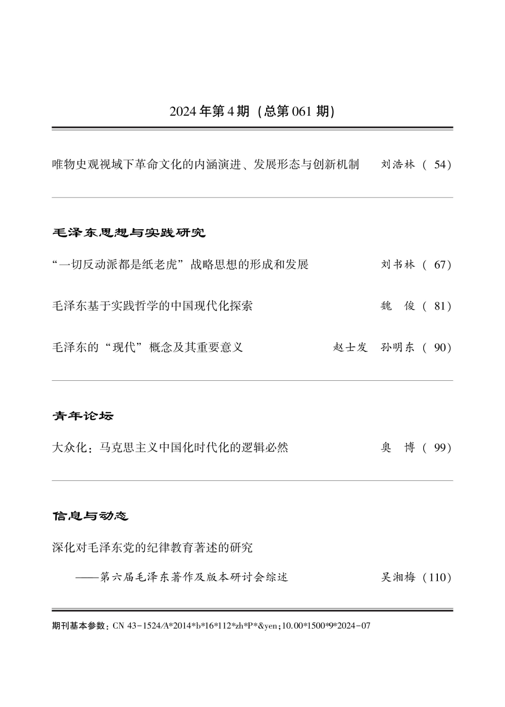 《毛泽东研究》2024年第4期