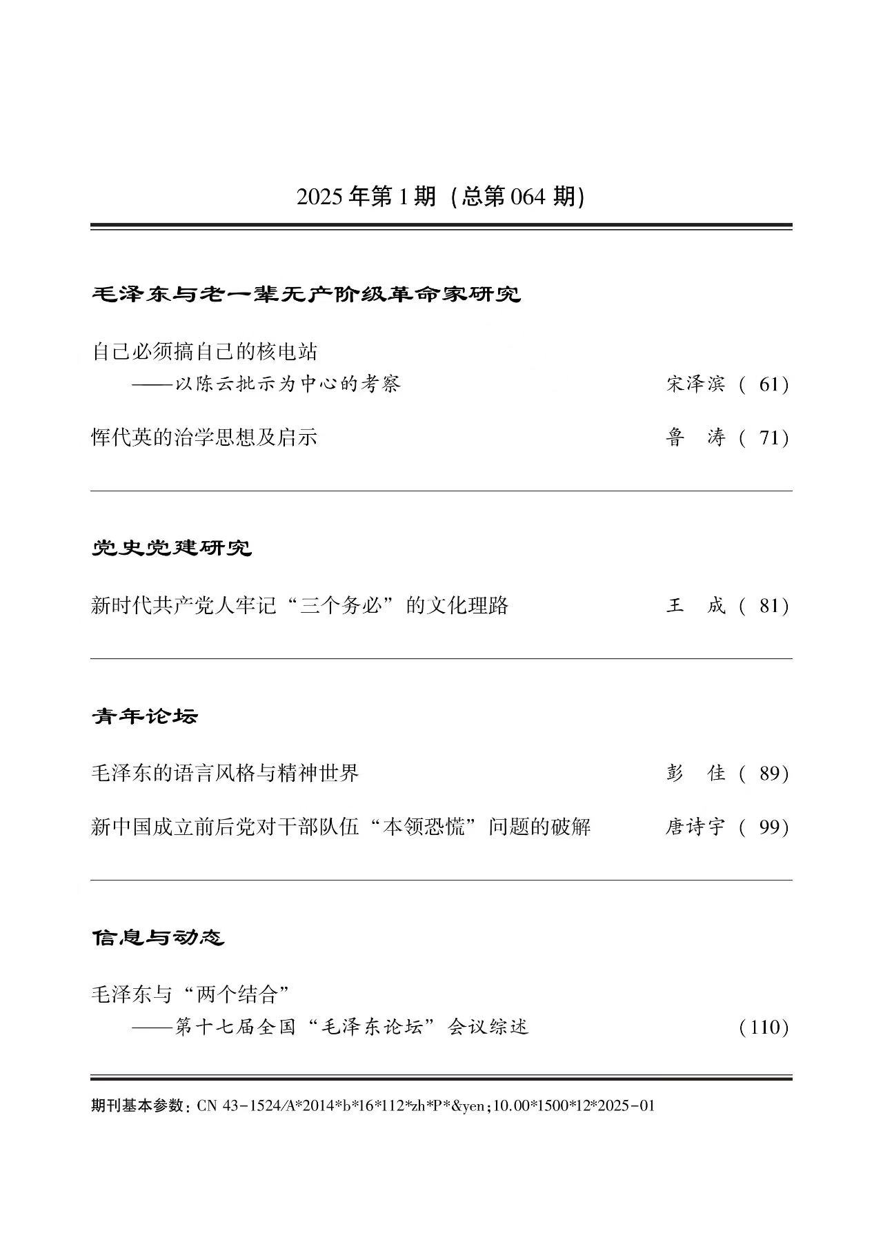 《毛泽东研究》2025年第1期
