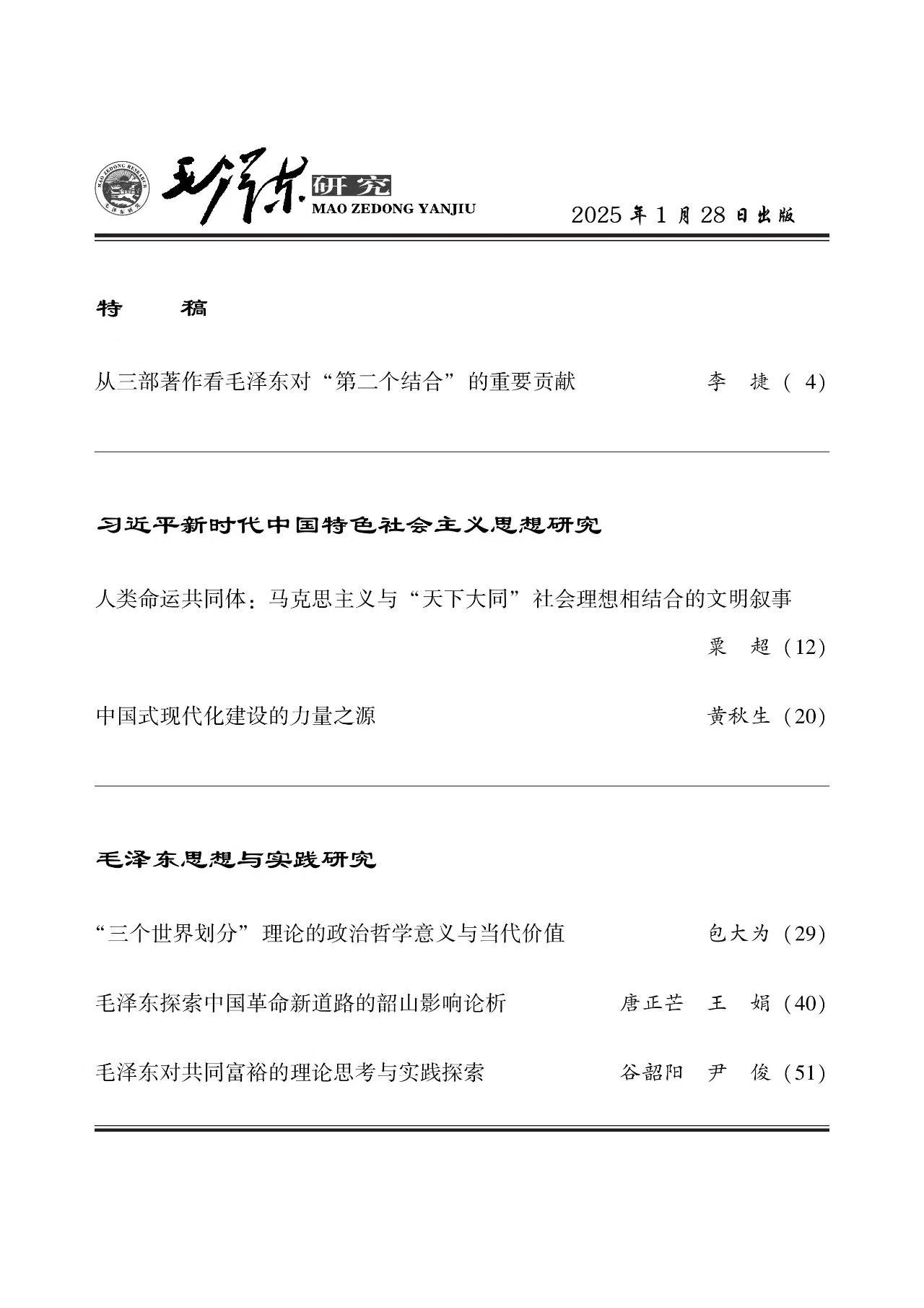 《毛泽东研究》2025年第3期