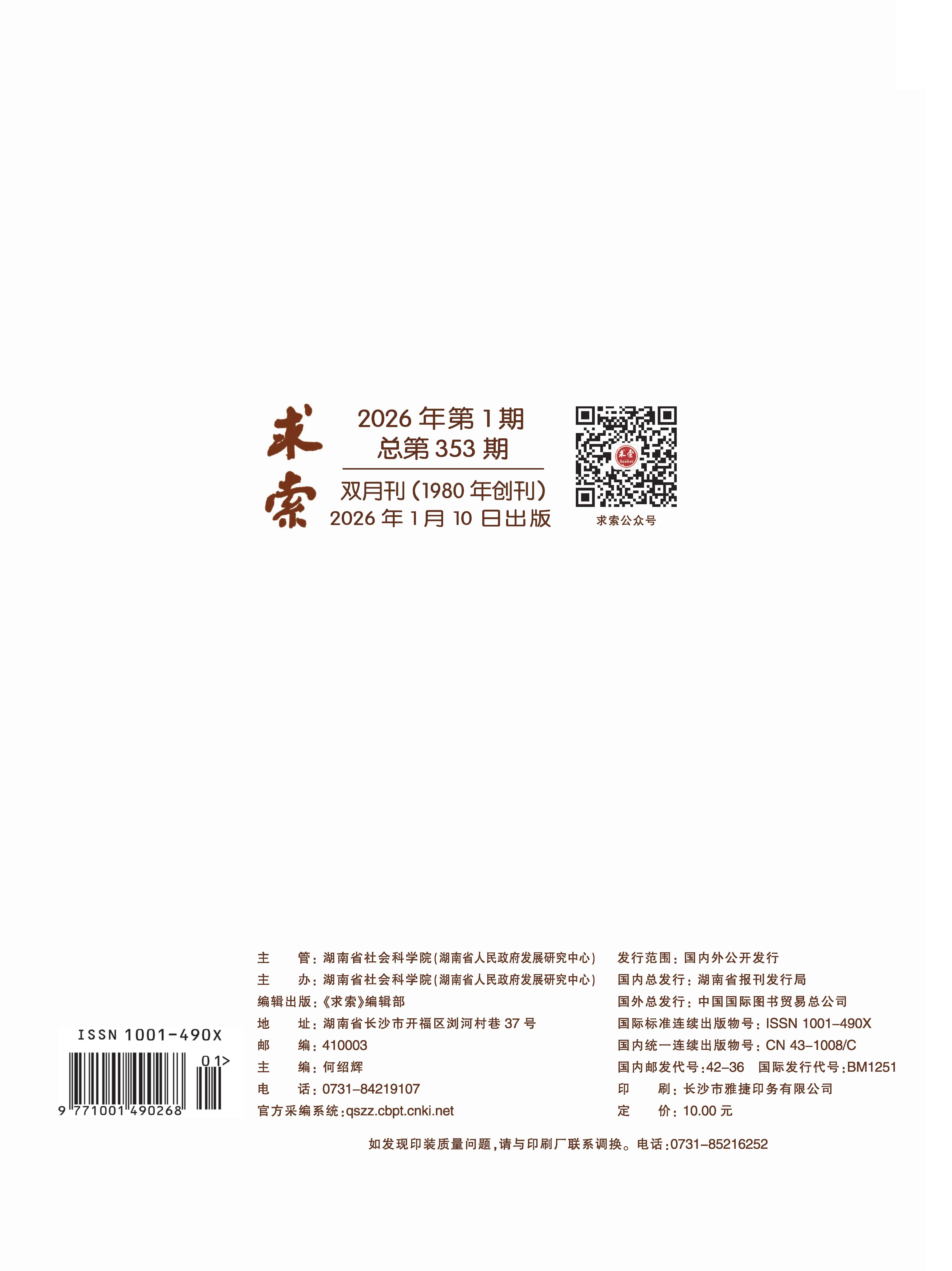 《求索》2026年第1期公开出版
