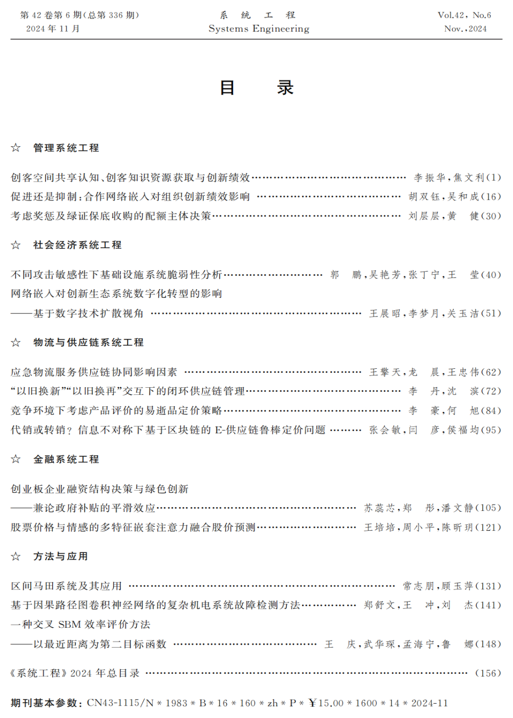 《系统工程》2024年第6期