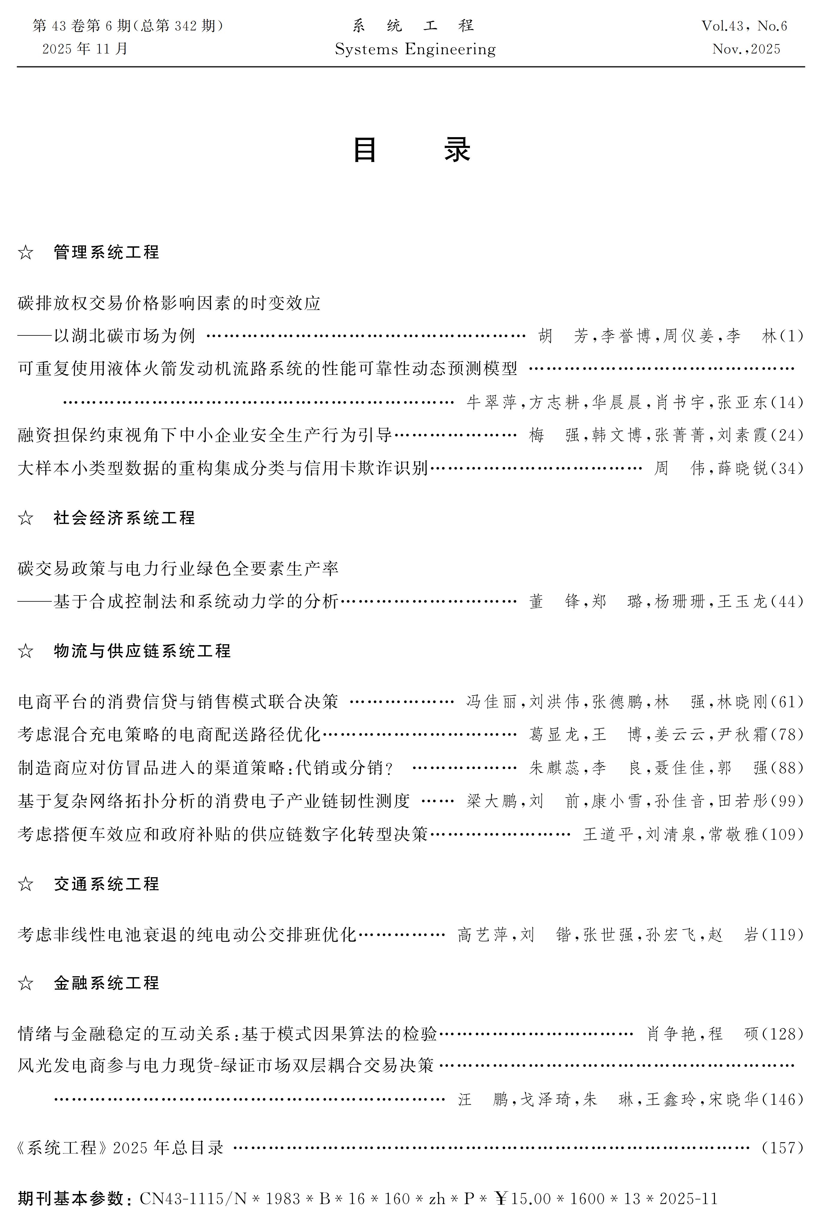 《系统工程》2025年第6期