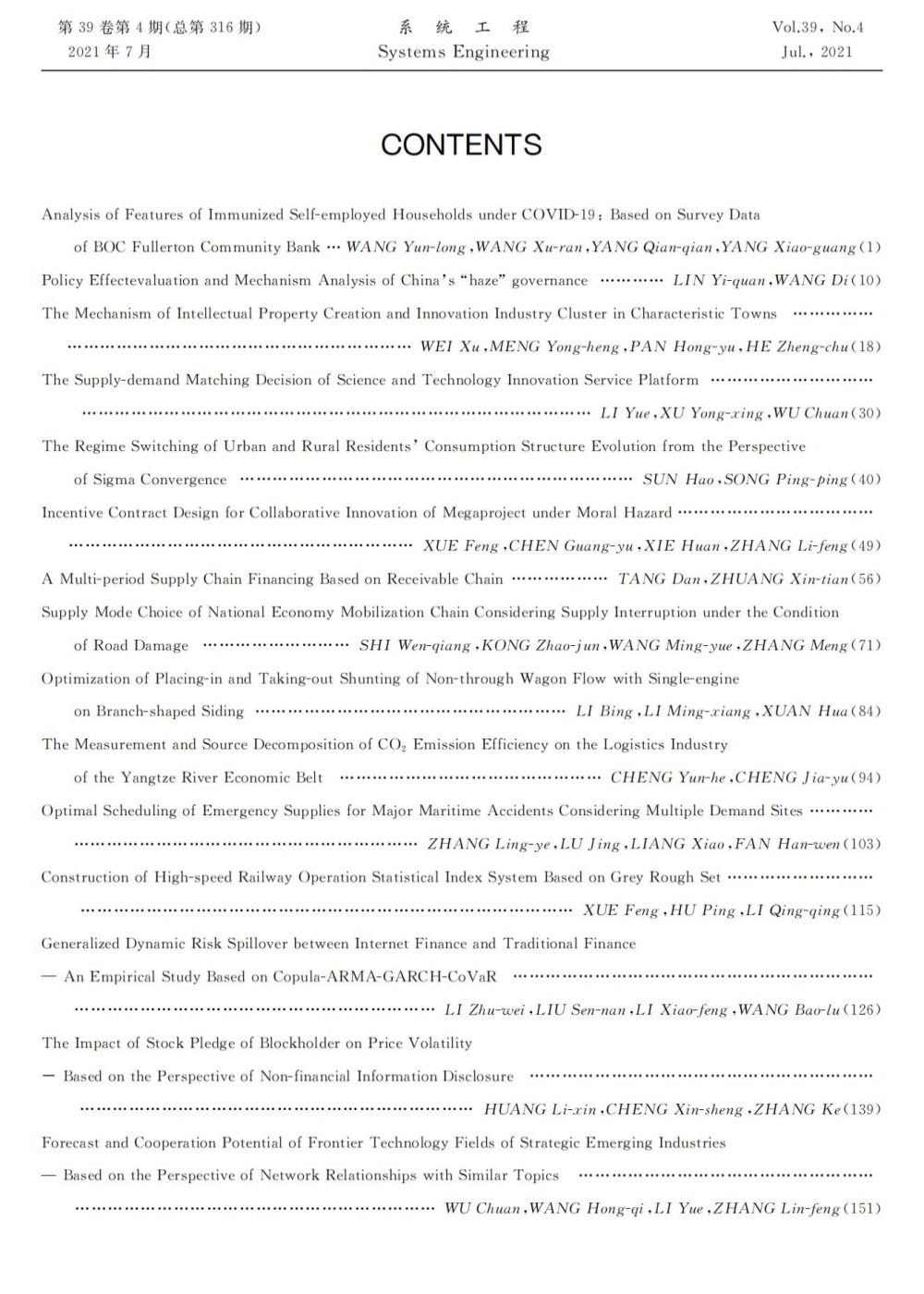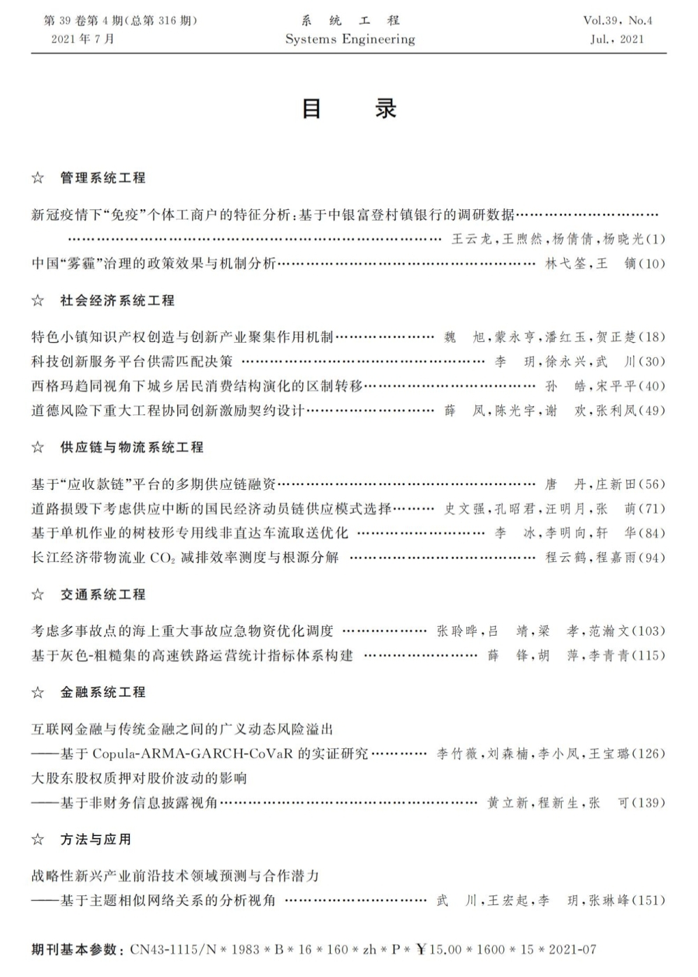 《系统工程》2021年第4期